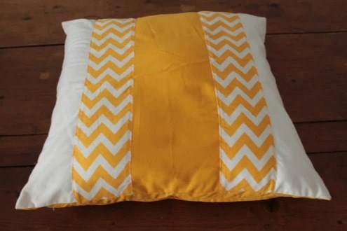 Pillowcase cotton white with 2 stripe chevron yellow & 1 stripe yellow solid 19″x19″