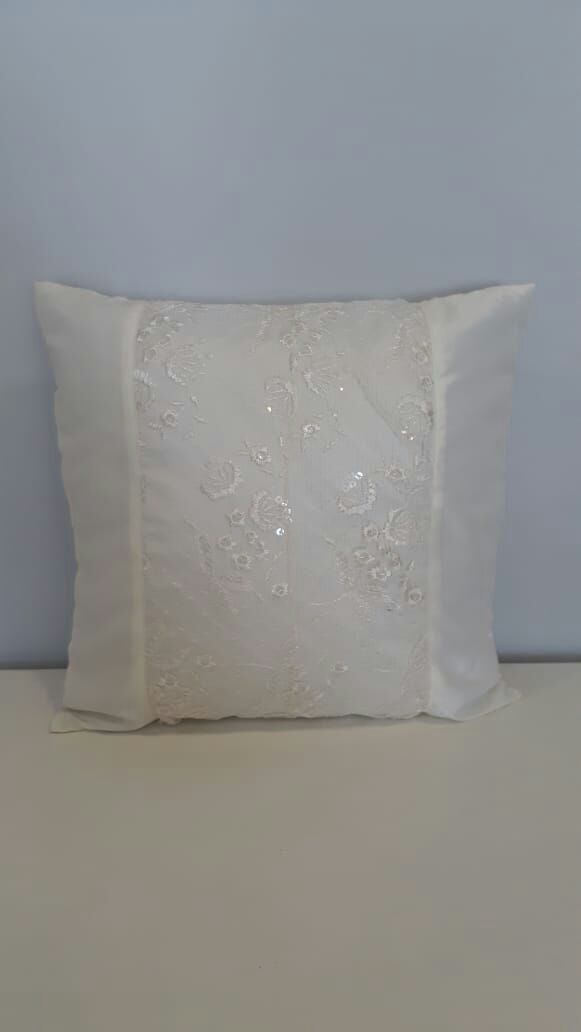 Pillowcase Peau de Soie Lase Sequinse Clear w/2 Off White 15″x15″