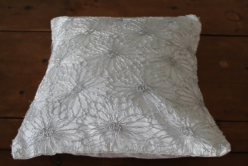 Pillowcase Shantung w/ Meche Silver Off White 15″x15″