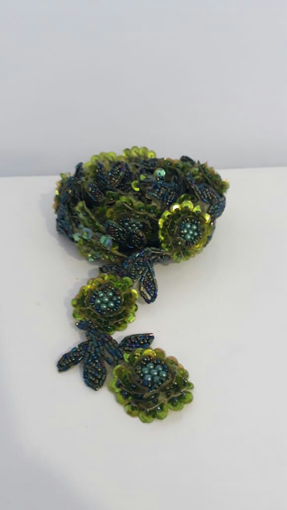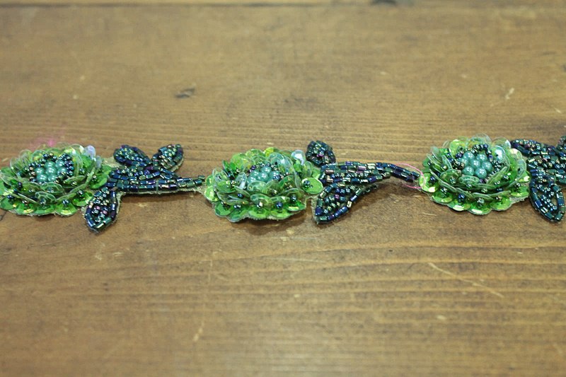 2 Tones Green Beads Flowers Trimming