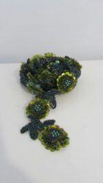 Gold and Aqua Flowers Sequins Trimming 1.5″